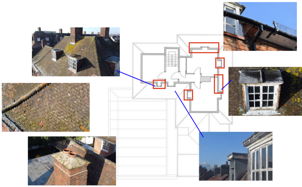 - Windows and dormers: Too many years without repair have led to rotten frames and missing panes.
